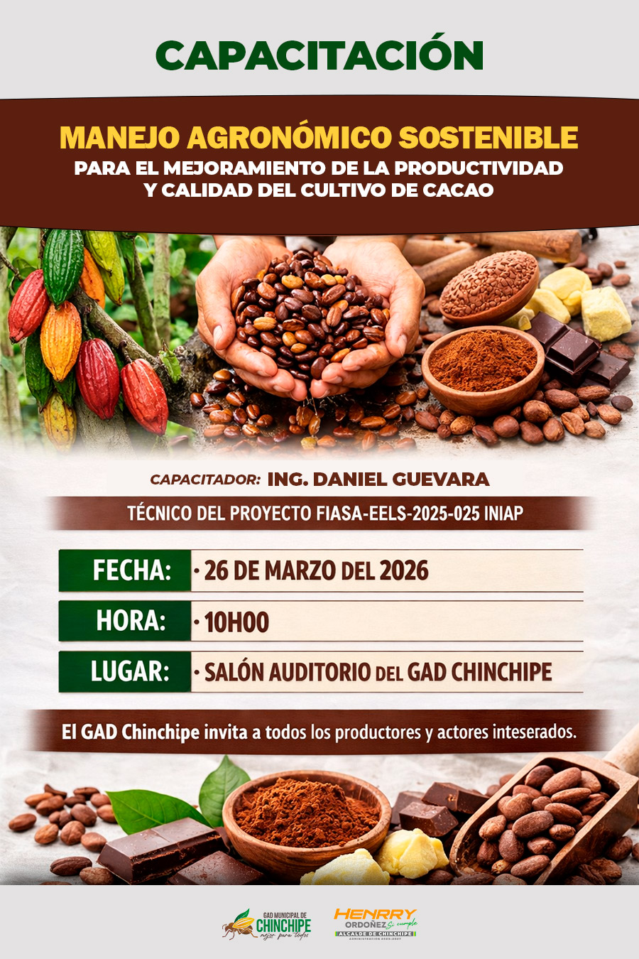 ¡Impulsa la productividad de tu cultivo de cacao! El GAD Chinchipe te invita a participar en […]